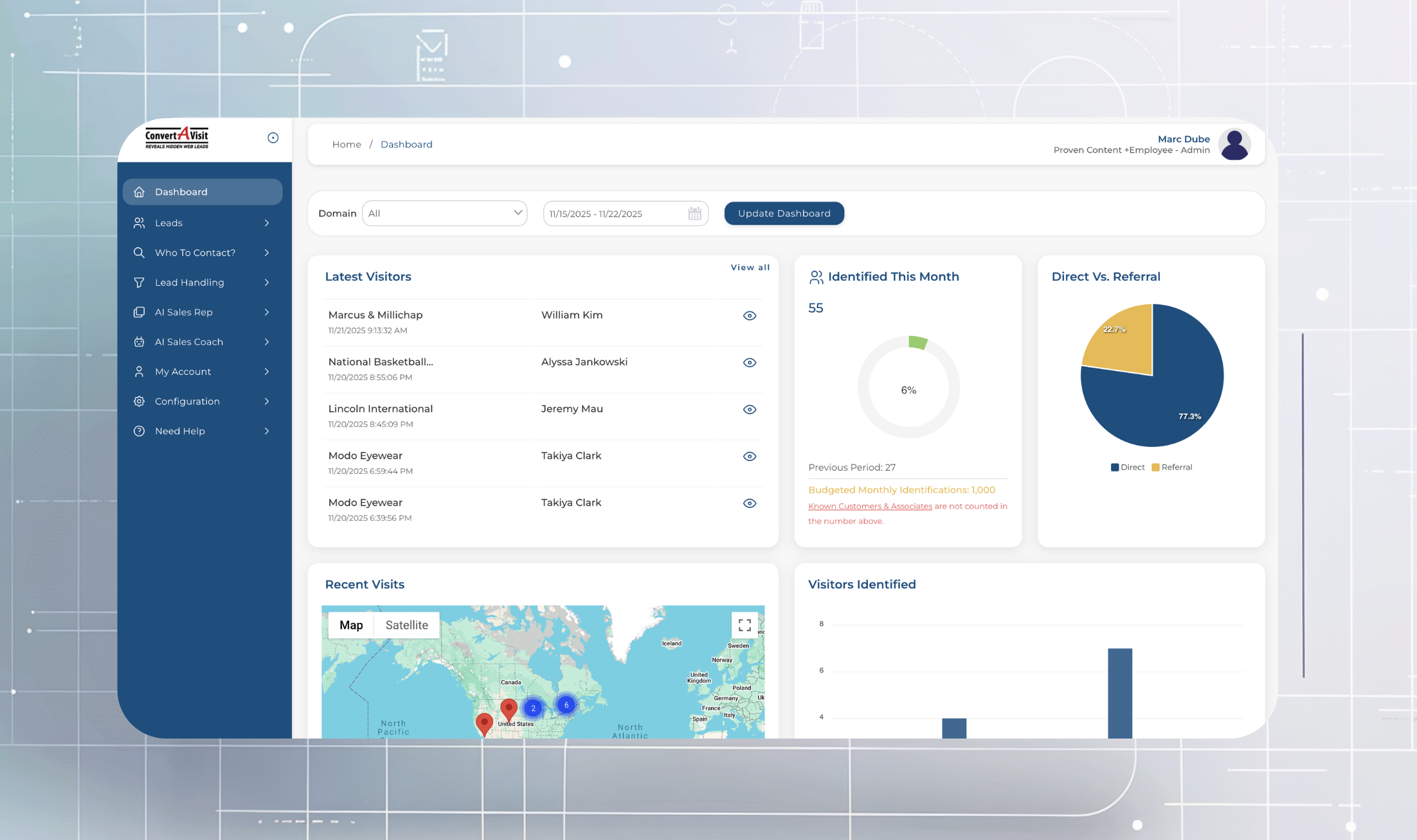 ConvertAVisit identifies the companies visiting your website, what pages they view, and the intent they’re showing, all in real time.